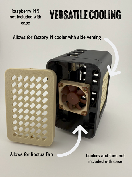 Versatile Case for Raspberry Pi 5 – Noctua Fan & Factory Cooler Compatible, Supports Various HATs